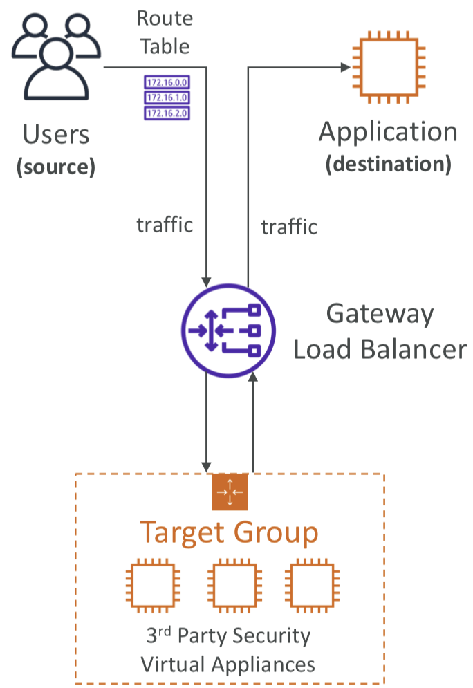 방화벽을 예로 들면, 트래픽을 드롭 할 수 있지만 허용되면 GWLB를 통과하며 GWLB에서는 트래픽을 애플리케이션으로 보낸다. 애플리케이션에서는 명료하게 모든 트래픽이 GWLB와 타사 가상 어플라이언스를 통과해 모든 네트워크 트래픽을 분석하고 드롭 시킬 수도 있다.
