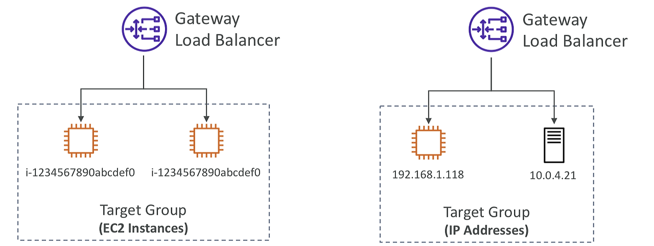그리고 GWLB는 가상 어플라이언스의 대상 그룹 전반으로 트래픽을 확산한다.