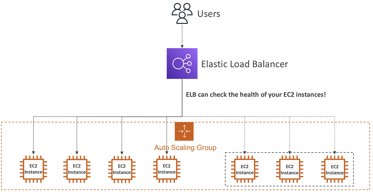 - ELB는 상태 확인을 통해 EC2 인스턴스의 상태를 확인하고 ASG로 전달할 수 있다.