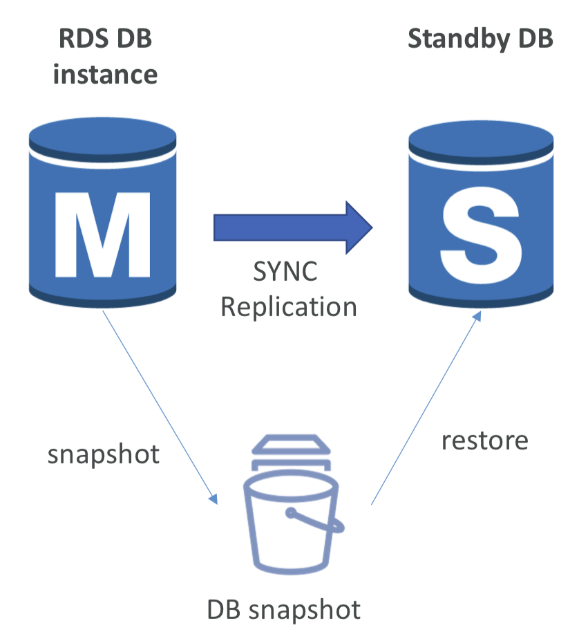 기본 데이터베이스의 RDS가 자동으로 스냅샷을 생성한다. 이 스냅샷은 새로운 스탠바이 데이터베이스에 복원된다.