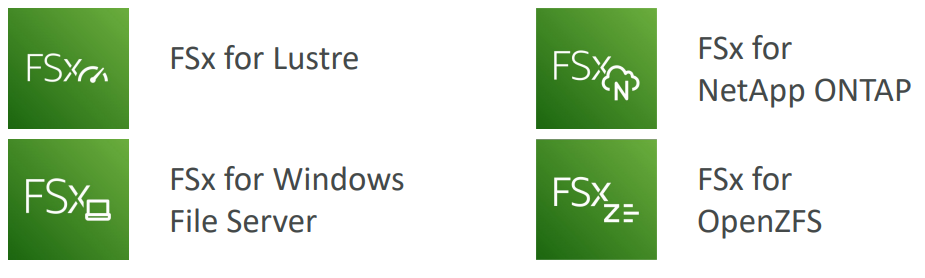 - FSx는 AWS에서 완전 관리형 서비스로 타사 고성능 파일 시스템을 실행시킨다.