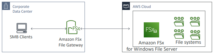 - FSx for Windows File Server가 Amazon FSx 파일 시스템에 배포되어 있고, 우리의 회사 데이터 센터에 있는 SMB 클라이언트에 액세스하려 한다고 해보자.