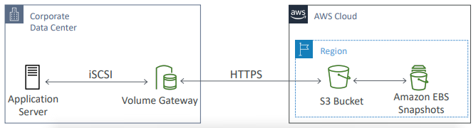 - 애플리케이션 서버 백업이 필요한 경우, iSCSI 프로토콜로 볼륨 게이트웨이를 생성하고 이 볼륨 게이트웨이가 Amazon S3에 저장되는 Amazon EBS 스냅샷을 생성한다.