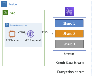 - Kinesis에서 VPC 엔드포인트를 사용할 수 있는데, 이를 이용하면 Kinesis에 인터넷을 거치지 않고 프라이빗 서브넷의 인스턴스에서 직접 손쉽게 접근할 수 있다.