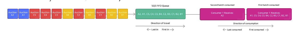 그래서 SQS FIFO라는 선입선출 방식이 있다. - 이 SQS FIFO의 그룹 ID를 사용하지 않으면 모든 메시지가 소비되는 방식은 보내진 순서에 따르며 소비자는 하나만 존재한다.
