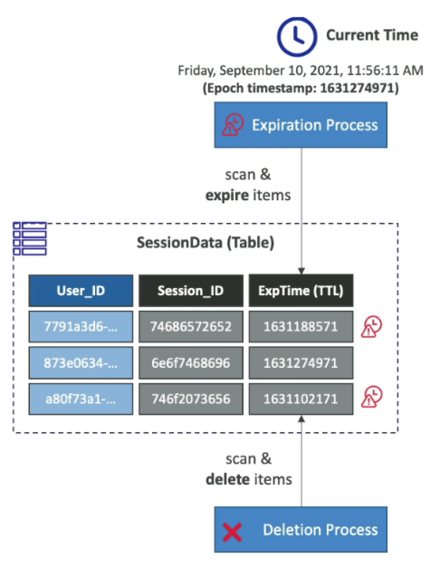 - 가령 SessionData라는 테이블에서 ExpTime(TTL)이라는 만료 기간 속성이 있을 것이다. 이 안에 타임 스탬프가 들어가는 것이다.