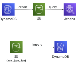 - 내보낼 때는 DynamoDB JSON이나 ION 형식을 이용해야 한다. - S3에서 테이블을 가져올 수도 있다.