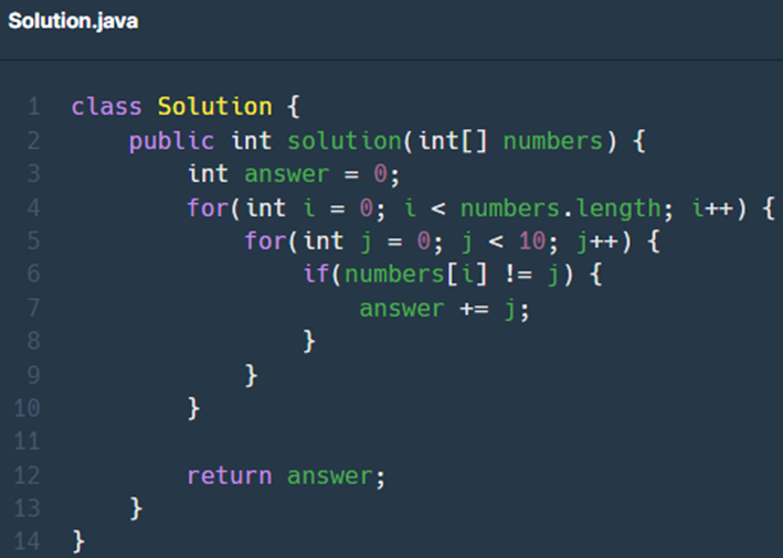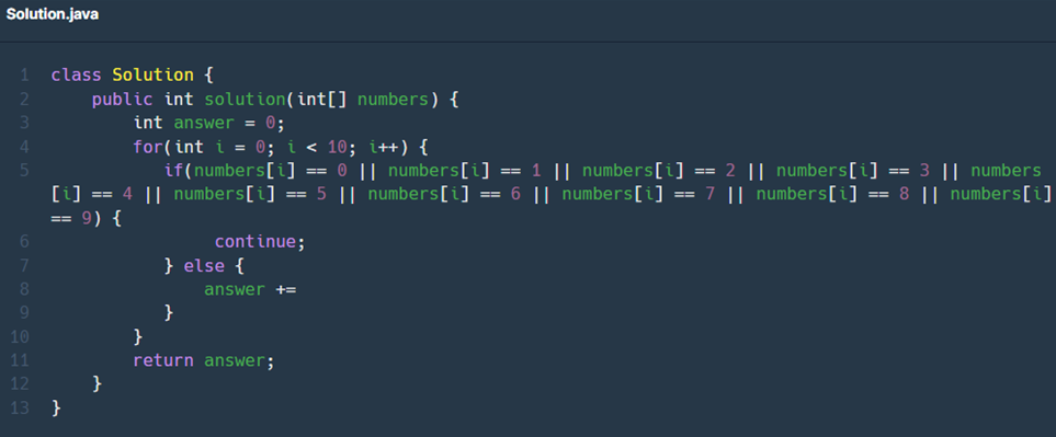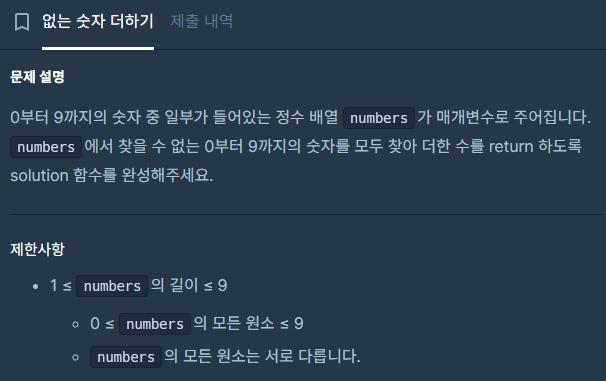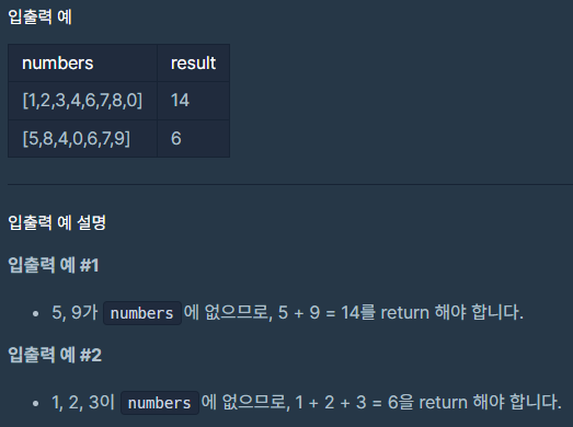 (다른분들 풀이 보니깐 0~9까지 더한다음에 numbers의 합을 빼줘서 간단하게 풀더라구요)